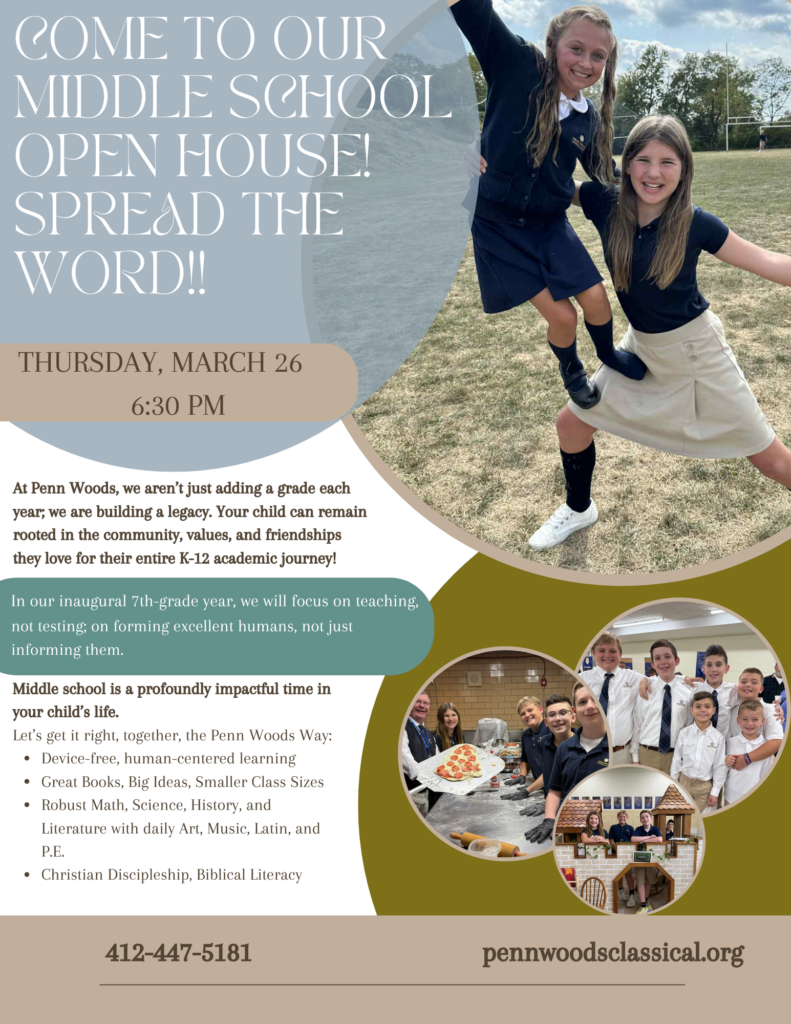 Join us on March 26, 2026 at 6:30 pm for our Middle School Open House.